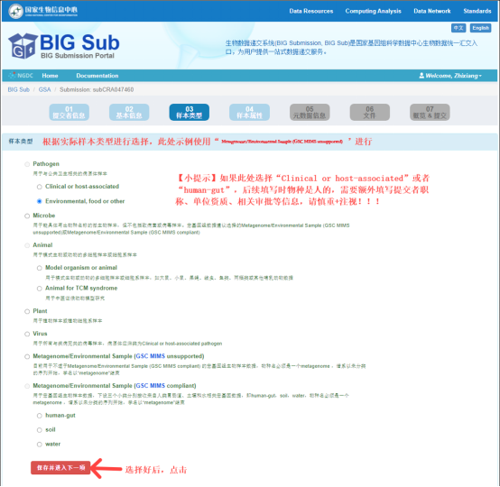 为保证元数据信息与测序数据文件的一致性与完整性,便于后续数据使用者检索与使用,在开始创建GSA数据集前,用户需要为 GSA 数据集的研究任务创建 BioProject,并为数据集的实验样本创建相应的 BioSample(s) 。